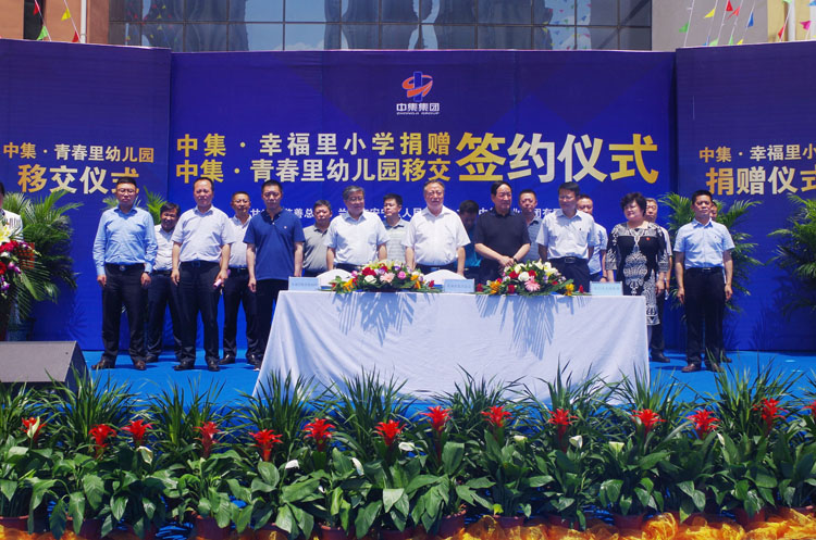 2017年6月22日下午14時(shí),甘肅中集實(shí)業(yè)集團(tuán)有限公司通過甘肅省慈善總會(huì),向蘭州市安寧區(qū)人民政府捐贈(zèng)價(jià)值1.02億元中集•幸福里小學(xué)暨中集•青春里配建幼兒園移交儀式在中集•幸福里小學(xué)操場(chǎng)隆重舉行。甘肅省原人大常委會(huì)副主任、甘肅省慈善總會(huì)會(huì)長朱志良,甘肅省原民政廳黨組書記、廳長、甘肅省慈善總會(huì)常務(wù)副會(huì)長梁國安,甘肅省教育廳副廳長趙 凱,蘭州市人大常委會(huì)副主任孫曉鋼,蘭州市人民政府副秘書長淡漢榮,安寧區(qū)區(qū)委書記王 方及安寧區(qū)區(qū)委副書記、區(qū)長雒澤民攜安寧區(qū)委、區(qū)人大、區(qū)政府、區(qū)政協(xié)四大班子領(lǐng)導(dǎo),蘭州市教育局、蘭州市國土局、蘭州市規(guī)劃局、蘭州市房產(chǎn)局相關(guān)領(lǐng)導(dǎo)出席捐贈(zèng)儀式,甘肅中集實(shí)業(yè)集團(tuán)有限公司黨委書記、董事長周啟濤代表公司完成與安寧區(qū)人民政府捐贈(zèng)及移交簽約。