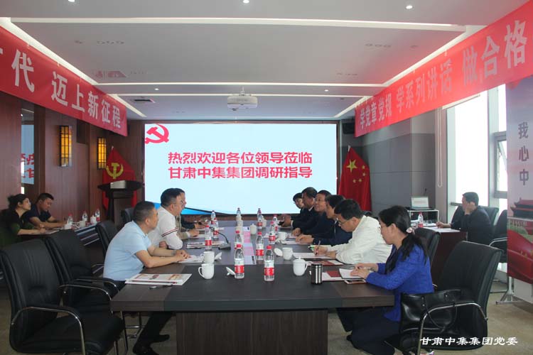 2019年5月21日上午,山西省非公經(jīng)濟(jì)組織和社會(huì)組織工委副書(shū)記、市場(chǎng)監(jiān)管局黨組成員、副局長(zhǎng)王國(guó)強(qiáng),山西省市場(chǎng)監(jiān)管局非公黨建處處長(zhǎng)朱志東一行6人,在省委非公經(jīng)濟(jì)組織和社會(huì)組織黨工委副書(shū)記、甘肅省市場(chǎng)監(jiān)管局黨組成員、副局長(zhǎng)肖建勝,甘肅省市場(chǎng)監(jiān)管局非公經(jīng)濟(jì)組織黨建工作處處長(zhǎng)劉玉圣,蘭州市市場(chǎng)監(jiān)督管理局黨組成員、副局長(zhǎng)李繼軍,安寧區(qū)市場(chǎng)監(jiān)督管理局黨組成員、副局長(zhǎng)蘇潤(rùn)彬陪同下蒞臨集團(tuán)黨委調(diào)研非公企業(yè)黨建工作,集團(tuán)公司黨委書(shū)記、董事長(zhǎng)周啟濤攜集團(tuán)公司黨委委員向參觀調(diào)研組匯報(bào)企業(yè)黨建工作。