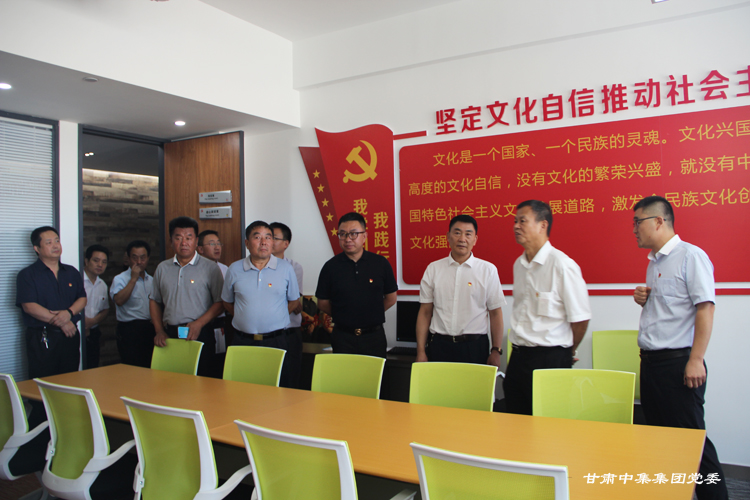 調(diào)研組一行首先參觀了集團(tuán)公司黨委宣傳陣地、黨員活動(dòng)室、談心談話室、閱覽室、健身中心等,通過(guò)查看黨支部建設(shè)標(biāo)準(zhǔn)化資料、聽(tīng)取專題工作匯報(bào)和現(xiàn)場(chǎng)交談后,韓 旭副局長(zhǎng)對(duì)甘肅中集集團(tuán)黨委創(chuàng)新工作思路給予充分肯定,重點(diǎn)對(duì)黨支部建設(shè)標(biāo)準(zhǔn)化、樓宇黨建工作特色和亮點(diǎn),特別是集團(tuán)公司黨委開(kāi)辟了非公經(jīng)濟(jì)組織黨建工作的新路子、在開(kāi)展 “三崗聯(lián)創(chuàng)”、“三亮”、“立足崗位做貢獻(xiàn)”等活動(dòng)中取得優(yōu)異成績(jī)給予充分肯定。他強(qiáng)調(diào):“甘肅中集集團(tuán)黨委黨建工作抓住了非公企業(yè)黨建存在問(wèn)題的關(guān)鍵,充分發(fā)揮了黨組織的政治優(yōu)勢(shì)和組織優(yōu)勢(shì),通過(guò)黨員隊(duì)伍建設(shè)和加強(qiáng)組織力,提高了企業(yè)經(jīng)營(yíng)管理水平,黨建各項(xiàng)工作求真務(wù)實(shí),開(kāi)拓創(chuàng)新”。他現(xiàn)場(chǎng)向西北五省、市非公黨建負(fù)責(zé)人強(qiáng)調(diào):“要以此次觀摩為契機(jī),認(rèn)真學(xué)習(xí)借鑒甘肅中集集團(tuán)黨委的成功經(jīng)驗(yàn)和做法,特別是把黨支部建設(shè)在樓宇、打造紅色紐帶工程和深入推進(jìn)黨支部建設(shè)標(biāo)準(zhǔn)化、強(qiáng)化組織建設(shè)、創(chuàng)新活動(dòng)方式、營(yíng)造非公經(jīng)濟(jì)組織黨建工作的濃厚氛圍、為提升樓宇總部經(jīng)濟(jì)高質(zhì)量發(fā)展提供堅(jiān)強(qiáng)的政治保障和組織保障方面要大力學(xué)習(xí)和推廣!